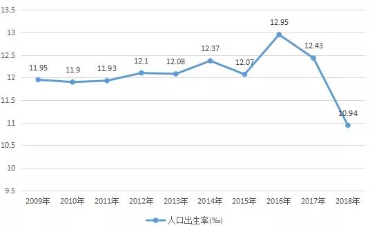 2009-2018年中國(guó)新生兒出生率變化