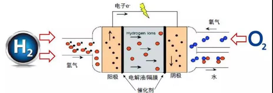 其工作原理是H2在陽(yáng)極催化劑作用下被氧化成H+和e-,H+通過(guò)質(zhì)子交換膜達(dá)到政正極,與O2在陰極反應(yīng)生成水,e-通過(guò)外電路達(dá)到陰極,連續(xù)不斷的反應(yīng)就產(chǎn)生了電流。燃料電池雖帶有“電池”二字,卻不是傳統(tǒng)意義上的儲(chǔ)能設(shè)備,而是一種發(fā)電設(shè)備,這是燃料電池與傳統(tǒng)電池最大的區(qū)別。