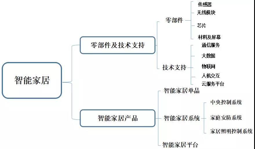 簡單來看,智能家居產(chǎn)業(yè)鏈可以看成由兩部分構成,即零部件及技術支持和智能家居產(chǎn)品。