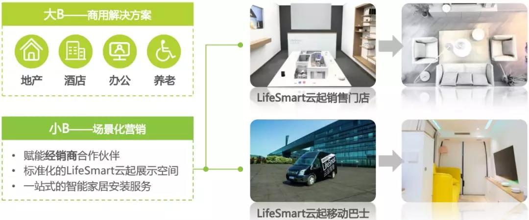 LifeSmart云起的全屋智能解決方案主要面向高端用戶群體,通過B端的線下渠道銷售給最終用戶。一方面,LifeSmart云起與房地產(chǎn)、酒店、養(yǎng)老等行業(yè)客戶達成戰(zhàn)略合作,采用項目制的方式落地商用解決方案。同碧桂園聯(lián)手打造的馬來西亞森林城市智能豪宅、為阿里巴巴定制的智能會議系統(tǒng)等都是其中的標桿案例。另一方面,LifeSmart云起基于眾多中小經(jīng)銷商客戶,構建起穩(wěn)固的銷售渠道。通過向經(jīng)銷商輸出標準化的展示空間和服務體系,可以由智能機器人完成LifeSmart云起樣板間內(nèi)的產(chǎn)品介紹和演示。依靠可視化的智能家居體驗與一站式的安裝服務,LifeSmart云起不僅可以觸達到廣泛的終端消費者,更能夠有效實現(xiàn)用戶流量的轉(zhuǎn)化。