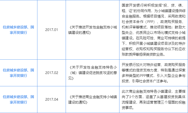 2016年以來,國家發(fā)改委、住建部聯(lián)合多個(gè)銀行出臺(tái)多項(xiàng)支持特色小鎮(zhèn)建設(shè)的政策文件及金融支持文件。