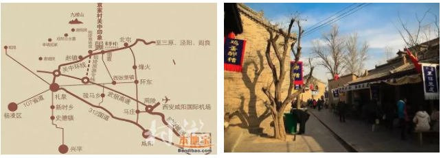 國陜西關(guān)中平原腹地,地勢(shì)西北高、東南低,地貌分為南部臺(tái)塬和北部丘陵溝壑區(qū)兩大類。袁家村周邊有著豐富的歷史文化資源,距袁家村10公里的唐太宗昭陵是全國第一批文物保護(hù)單位,世界上最大的皇家陵園。唐肅宗建陵石刻,是關(guān)中地區(qū)帝王諸陵中數(shù)量最多、保存最完整的石雕石刻群。袁家村現(xiàn)已形成以昭陵博物館、唐肅宗建陵石刻等歷史文化遺跡為核心的點(diǎn)、線、帶、圈為一體的旅游體系。