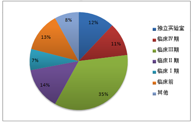 據(jù)美國臨床試驗(yàn)數(shù)據(jù)庫等數(shù)據(jù)來源顯示,2014年全球 CRO 市場(chǎng)收入約 70%來自臨床市場(chǎng)。其中,臨床Ⅱ和臨床Ⅲ期占了全部收入的 50%左右。我國CRO市場(chǎng)臨床研究占到近60%。其中,臨床I至III期市場(chǎng)合計(jì)約 37%,占比相對(duì)較低,且服務(wù)水平尚有一定提升空間。近年來,隨著國內(nèi)大中型 CRO 企業(yè)在臨床試驗(yàn)領(lǐng)域與跨國藥企開展合作,積累了越來越多的優(yōu)質(zhì)客戶和臨床試驗(yàn)研究經(jīng)驗(yàn),服務(wù)水平也正在快速提高,并逐步向國際先進(jìn)水平靠攏。