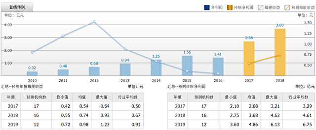 截至2017年7月17日,6個(gè)月以內(nèi)共有 17 家機(jī)構(gòu)對(duì)泰格醫(yī)藥的2017年度業(yè)績作出預(yù)測(cè);預(yù)測(cè)2017年每股收益 0.54 元,較去年同比增長 80%,預(yù)測(cè)2017年凈利潤 2.68 億元,較去年同比增長 90.4% 。