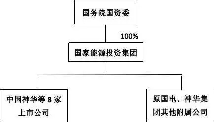 在神華集團與國電集團吸收合并前,國務院國資委分別持有國電集團、神華集團100%股權。吸收合并完成之后,國務院國資委持有國家能源投資集團100%股權。如圖所示: