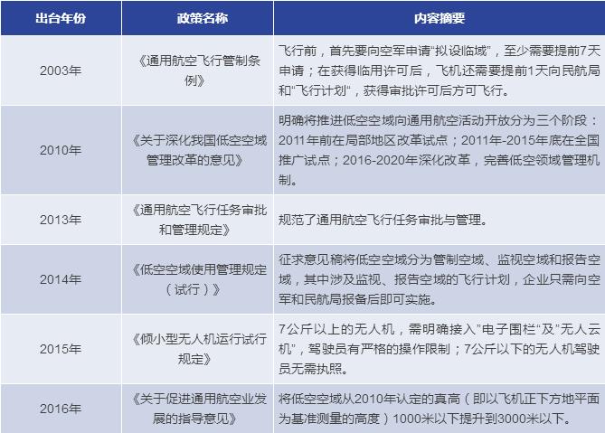 我國對低空空域的監(jiān)管十分嚴格,無人機屬于民航的一個分支,無人機市場的發(fā)展與國務(wù)院、中央軍委空中交通管制委員會和中國民航局的相關(guān)政策規(guī)定密切相關(guān)。
