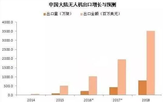 據(jù)國家海關(guān)數(shù)據(jù)統(tǒng)計,2015年中國大陸出口無人機89.1萬架,同比增長427.2%;出口金額5.15億美元(約合32.7億人民幣),同比增長730.6%。主要出口地區(qū)依次是香港、北美和歐盟,平均出口價折合人民幣約3670元。其中,出口香港的40%又轉(zhuǎn)銷到北美和歐盟。2015年中國大陸進口無人機14.5萬架,同比增長1350%;進口金額1.1億美元,同比增長83.3%。平均進口價折合人民幣約4817元。目前中國大約有400個無人機制造商,是全球70%的無人機需求市場的供貨商。