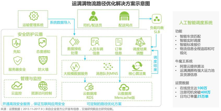 2016年底,運滿滿攜手阿里云,發(fā)布了“牛魔王”人工智能調(diào)度系統(tǒng),結合運滿滿的數(shù)據(jù)和用戶場景、以及阿里云的算法團隊,共同推動干線配貨人工調(diào)度朝著智能化方向推進?!芭D酢毕到y(tǒng)是基于云計算、大數(shù)據(jù)、移動互聯(lián)網(wǎng)和人工智能技術的公路物流領域高新技術綜合應用的典型代表,可以實現(xiàn)服務車主與貨主的智能車貨匹配、智能實時調(diào)度、智能標準報價及對物流信息全程追蹤和可視化,顯著提升公路干線物流貨源、車輛、路線、價格匹配速度、精準度和運輸組織效率。