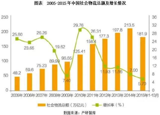 預計“十三五”期間中國第三產(chǎn)業(yè)年復合增長率將達到16%。其中,基礎物流服務(倉儲和運輸)增速將僅能達到10%左右的水平。