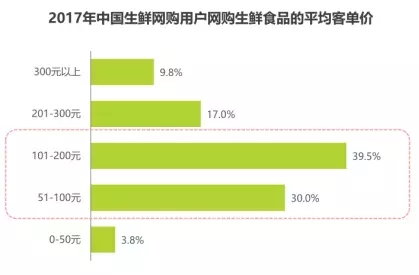 101-200元為生鮮網(wǎng)購單均消費(fèi)集中段,51-100元為第二單均消費(fèi)段。