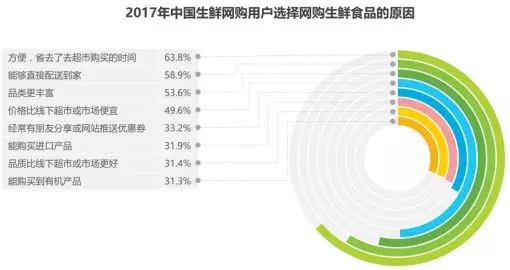 方便是用戶網(wǎng)購生鮮食品的主要原因,能夠直接配送到家、品類豐富對(duì)用戶有較大的吸引力。