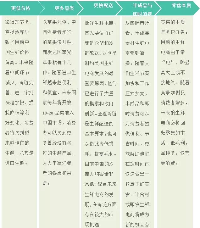 ? 一方面,一大批中小型生鮮電商企業(yè)或倒閉或被并購;另一方面,巨頭入局,不斷加碼冷鏈物流和生鮮供應(yīng)鏈投資,擁有全產(chǎn)業(yè)鏈資源和全渠道資源的企業(yè)將愈發(fā)具有優(yōu)勢(shì)。