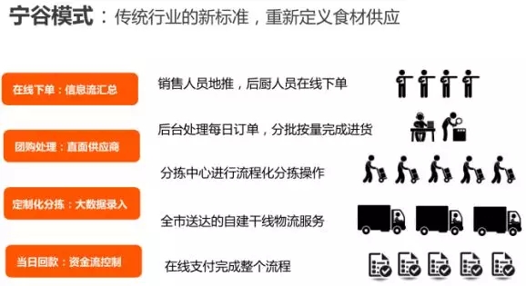 寧谷物配以“易訂貨”軟件為依托,欲打造區(qū)內(nèi)最大的城市商用食材供應(yīng)鏈平臺(tái);其商業(yè)模式是用平臺(tái)化團(tuán)購方式+城市內(nèi)自建物流配送體系,實(shí)現(xiàn)對(duì)城市餐飲商戶所需食材的全方位供應(yīng)。其生鮮B2B模式在銀川城區(qū)已初具規(guī)模,具有代表性,本報(bào)告將著重分析。