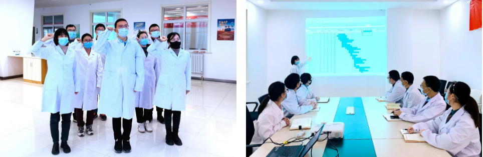 任務明確以后,檢測中心按照客戶規(guī)定的時間要求倒排工期,全面梳理采樣、接樣、制樣、檢測、記錄、報告等全流程工作量,明確目標任務、優(yōu)化方案、科學編制建設項目進度計劃?!笆弧眹鴳c節(jié)假日期間,檢測中心全員放棄假日休息匯聚實驗室,召開了項目啟動“誓師會”,由中心副主任對全員進行談心談話,闡明任務的重要性和艱巨性,并制作任務甘特圖,直觀展示任務節(jié)點和要求,實行掛圖作戰(zhàn),全員攻堅;同時,組織成立黨員突擊隊,由黨小組組長帶頭進行莊嚴宣誓,全體黨員用錚錚的誓言,心潮澎湃地表達了沖鋒在前、示范在先的決心,紛紛表示將以百倍的信心和干勁完成任務。誓師會結束后,中心全員隨即啟動檢測任務,將檢測前期工作全部準備到位。